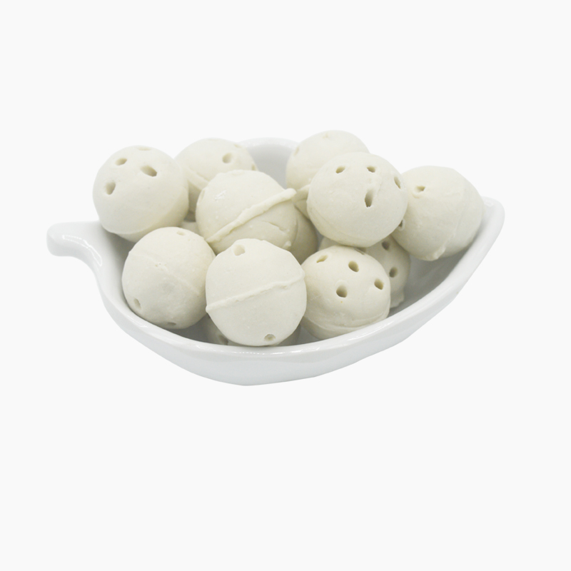 開(kāi)孔瓷球是在惰性瓷球基礎(chǔ)上開(kāi)發(fā)的新產(chǎn)品,它以球體直徑軸心進(jìn)行開(kāi)孔,既具有如惰性瓷球那樣一定的機(jī)械強(qiáng)度、化學(xué)穩(wěn)定性和熱穩(wěn)定性,又增加了比表面積和空隙率,從而增加了物料的分散性和通量,降低了系統(tǒng)的阻力。開(kāi)孔瓷球自投放市場(chǎng)以來(lái),廣泛應(yīng)用于石油、化工和天然氣行業(yè)替代惰性瓷球作催化劑的覆蓋支撐填料。