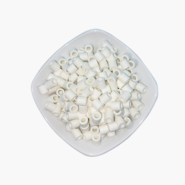 陶瓷拉西環(huán)填料是一種高徑相等的開孔環(huán)型填料,拉西環(huán)填料開孔率高,空隙大,通量大,阻力小,使得填料塔內(nèi)的氣體和液體能夠自由通過,填料層內(nèi)的氣體和液體分布情況較為良好,尤其是填料環(huán)內(nèi)表面容易被液體濕潤(rùn),使得內(nèi)表面得以充分利用。具有較大的通過能力和較低的壓降,塔的傳質(zhì)分離效率也高。