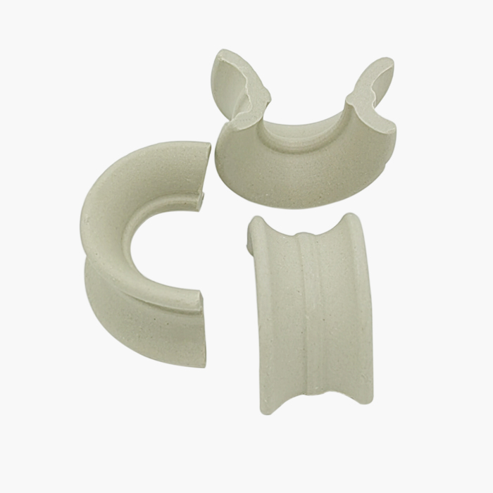 陶瓷矩鞍環(huán)的形狀介于環(huán)形與鞍形之間,因而兼有兩者之優(yōu)點。其填料床層具有較大的空隙率,床層內多為圓弧形液體通道,減少了氣體通過床層的阻力,也使液體向下流動時的徑向擴散系數減小。