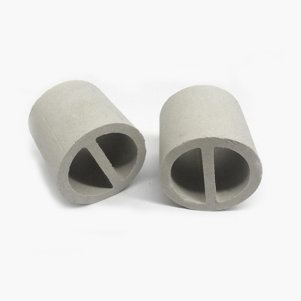 陶瓷一字環(huán)又被稱之為陶瓷勒辛環(huán)。它是在拉西環(huán)原有基礎(chǔ)上基于增加填料的比表 面積和強(qiáng)化傳質(zhì)效率的想法之上在其中間加入像漢字一的一般的隔板而設(shè)計(jì)出來的。形象化地稱它為一字環(huán)。陶瓷一字環(huán)是由陶瓷拉西環(huán)改良形成,比陶瓷拉西環(huán)有更大比表面積和更好的抗壓強(qiáng)度,擁有優(yōu)異的耐酸和耐熱性,能夠并且能耐除氫氟酸以外的各種無機(jī)酸、有機(jī)酸及有機(jī)溶劑的腐蝕,并能夠在高溫或者低溫的環(huán)境下使用,因此其使用范圍非常廣泛。