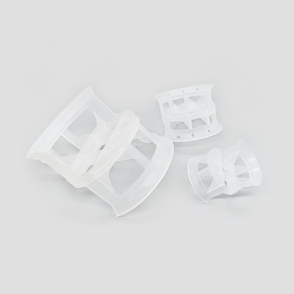 ?塑料共軛環(huán)由于其結(jié)構(gòu)獨(dú)特,在塔內(nèi)裝填時(shí),填料間及其與塔壁間均為點(diǎn)接觸,空隙均勻,具有流體阻力?。▔航敌。?,流量大的優(yōu)點(diǎn),流體通過填料層時(shí),汽液接觸良好,溝流和壁流趨勢小,從而達(dá)到傳質(zhì)性能優(yōu)良的效果。
